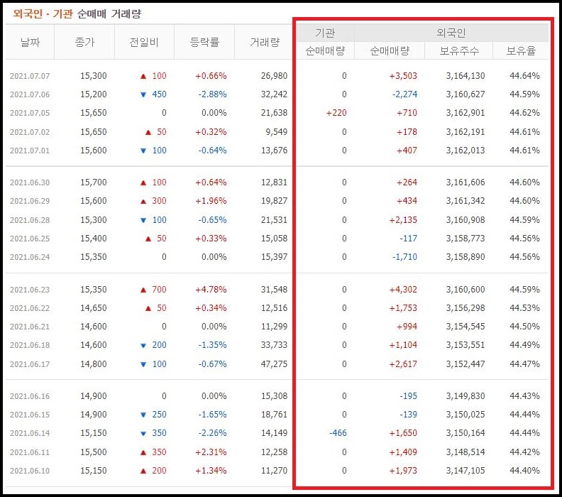 기관과 외국인의 수급은 주가가 탄력적으로 시세가 나올 수 있을지 여부에 대해 판단할 수 있는 근거가 됩니다.