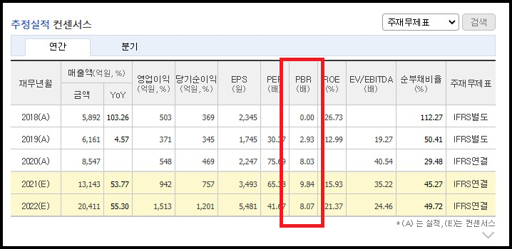 5. PBR(주가순자산비율)