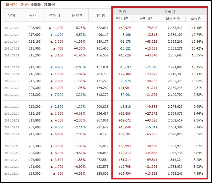 기관과 외국인의 수급은 주가가 탄력적으로 시세가 나올 수 있을지 여부에 대해 판단할 수 있는 근거가 됩니다.