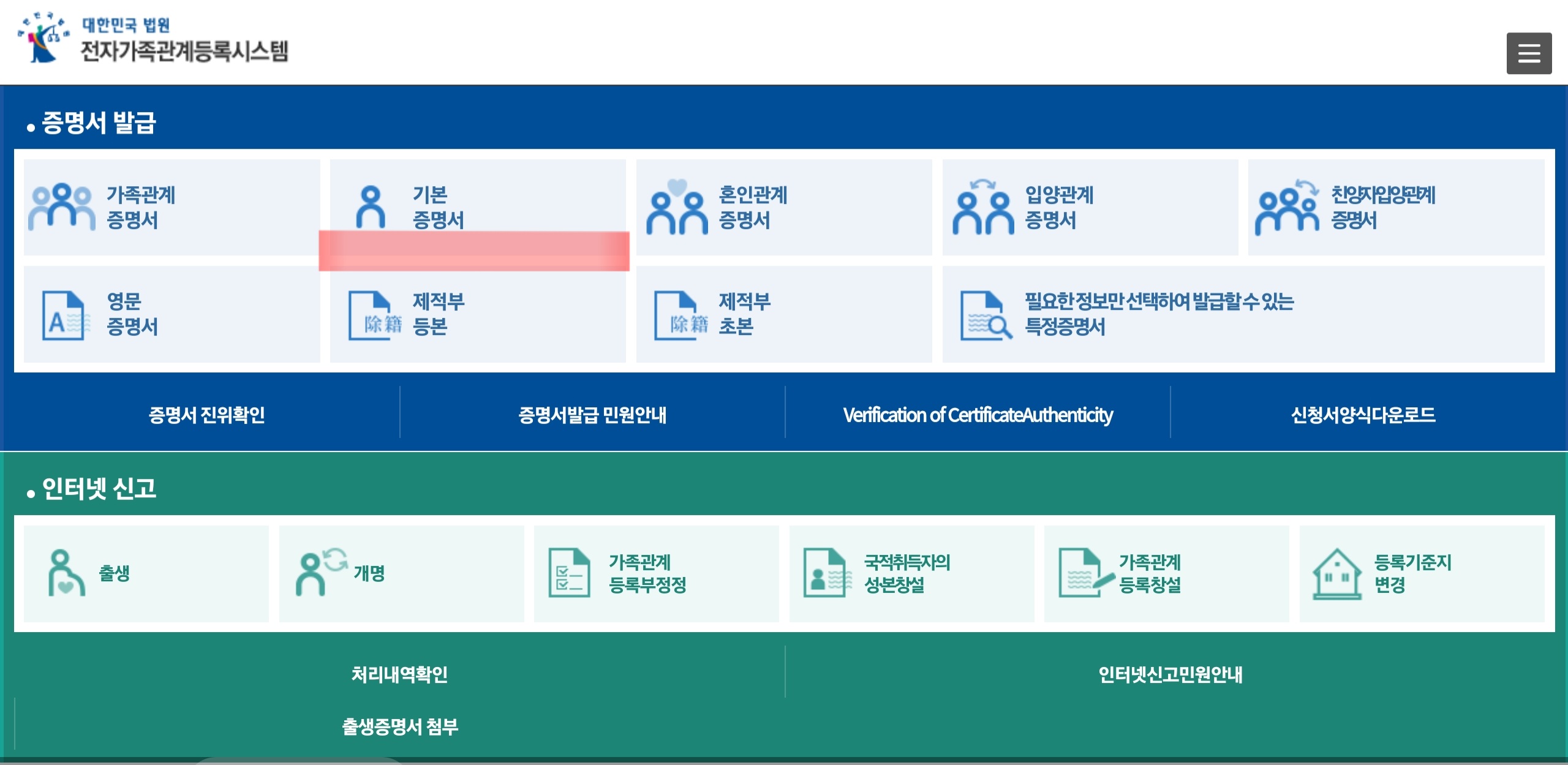 대법원 전자가족관계등록시스템에서 서류 발급하는 방법