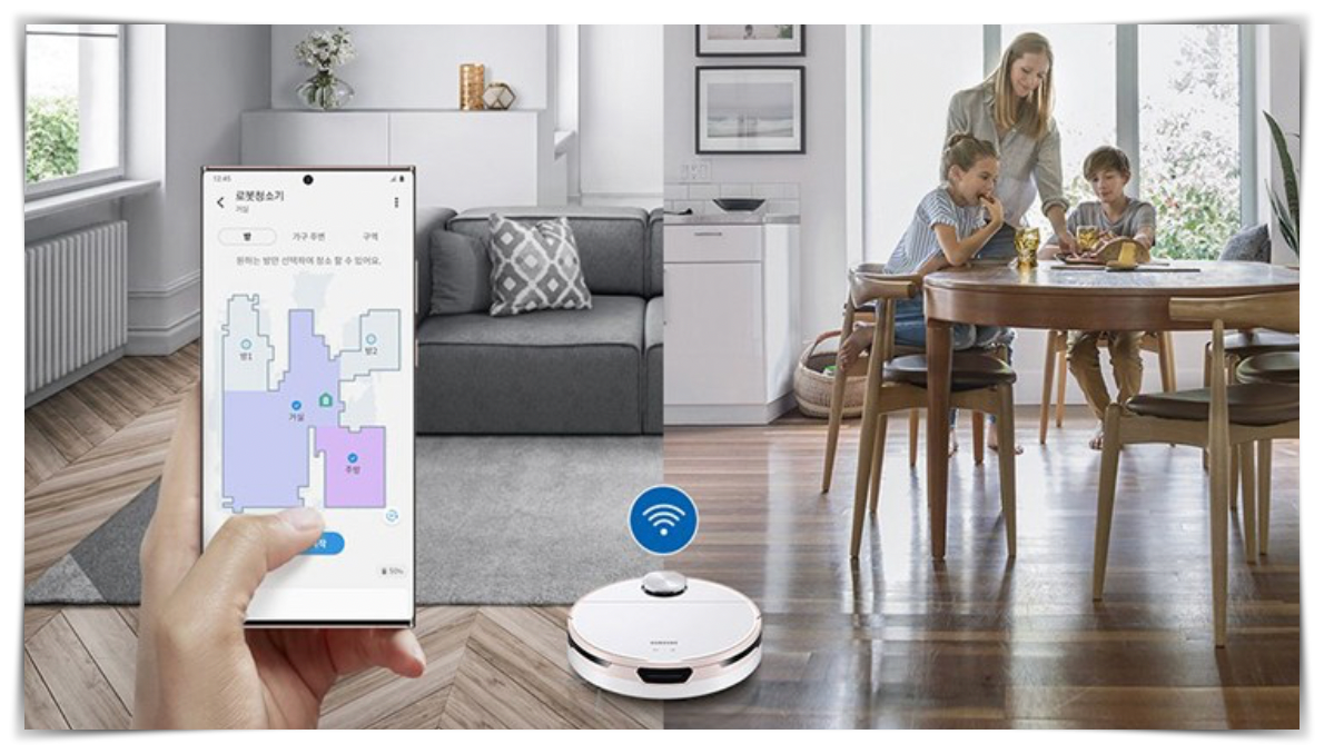 Smarththings 앱을 활용해서 청소 영역을 별도로 설정하거나 집에 돌아오는 시간에 맞춰서 청소 시간을 예약할 수 있습니다.