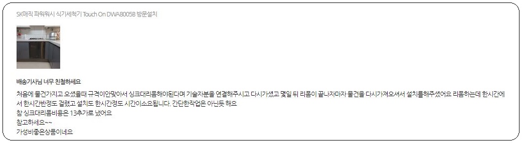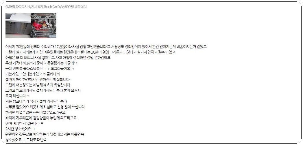 SK매직 파워워시 식기세척기 Touch On DWA8005B 방문설치
